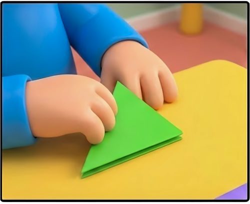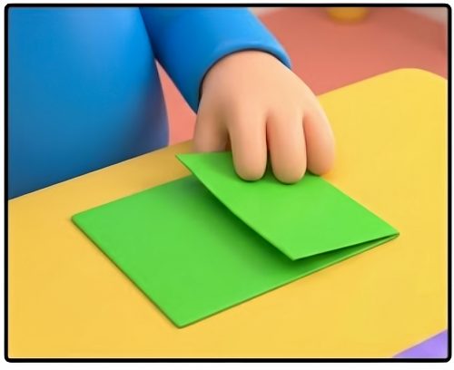 2.Dobla el cuadrado por la mitad dos veces hasta que quede un pequeño triángulo.