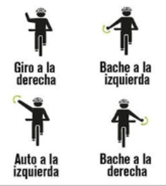 El giro a la derecha o izquierda se señala extendiendo el brazo correspondiente. Este sistema de comunicación visual no solo organiza al grupo, sino que también transmite nuestras intenciones a vehículos cercanos, promoviendo la convivencia segura en las vías.